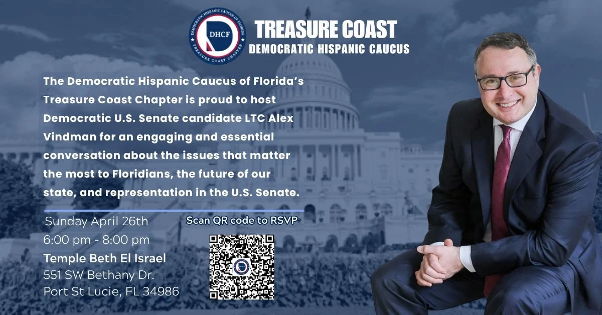 Town Hall with US Senate Candidate LTC Alex Vindman Sunday, April 26, 2026 6:00 PM 8:00 PM Google Calendar ICS RSVP