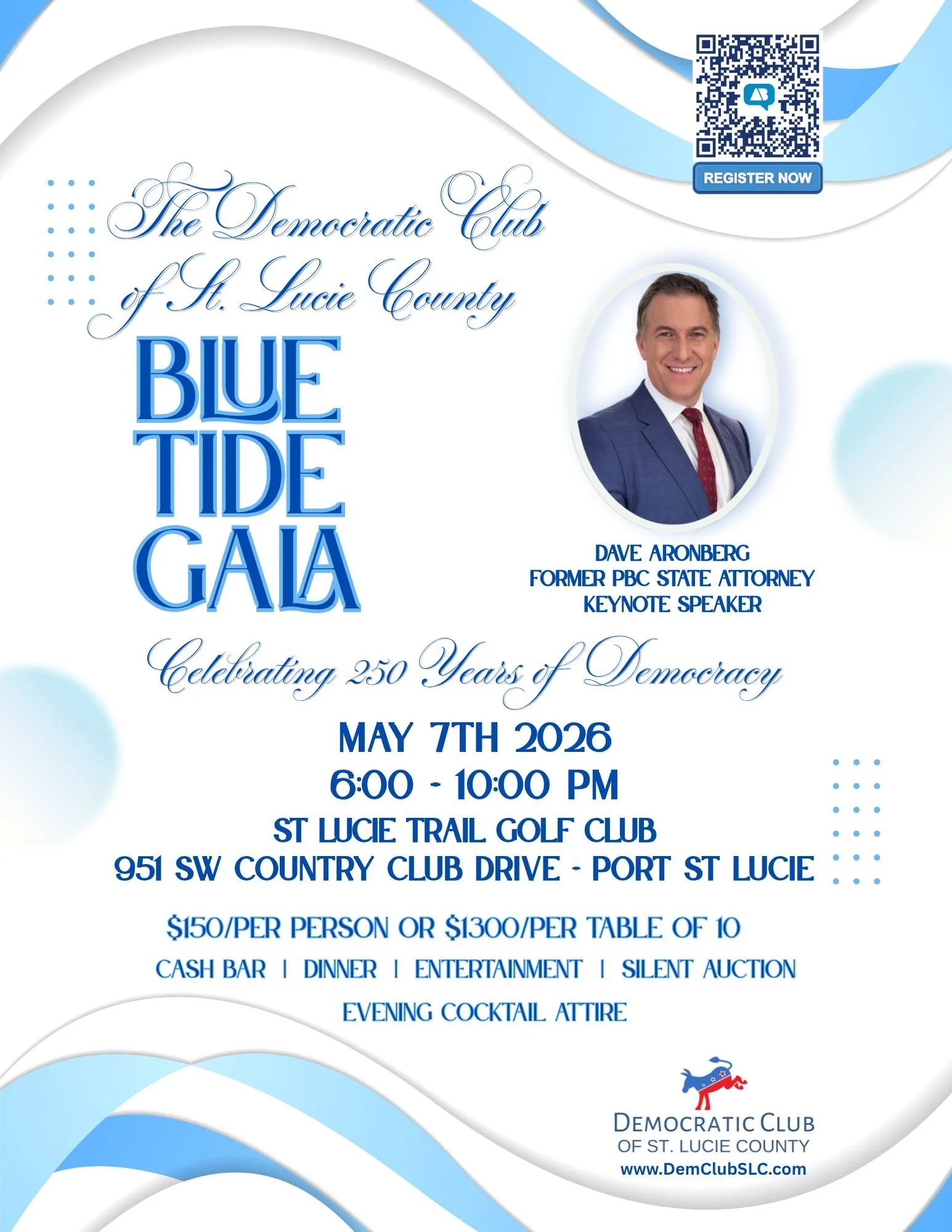 Democratic Club Blue Tide Gala Thursday, May 7, 2026 6:00 PM 10:00 PM Google Calendar ICS Buy Tickets